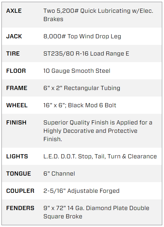 The 10SR from Big Tex Trailers is a medium-duty dump trailer equipped with a straight ram hydraulic lifting system. This unit comes standard with a lockable pump box, combo three-way rear gate and LED lights, and is powdercoated for a long-last build. Have confidence when hauling dirt, gravel, mulch, manure and any other light loads around the home or ranch.